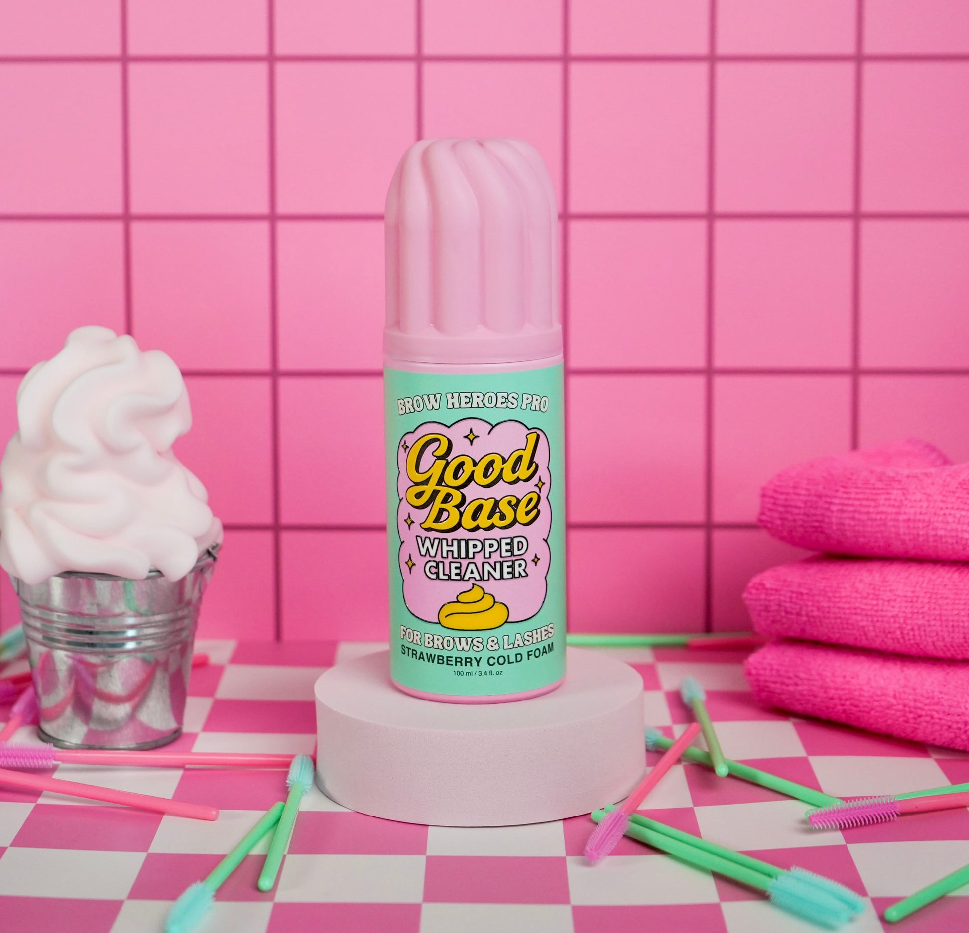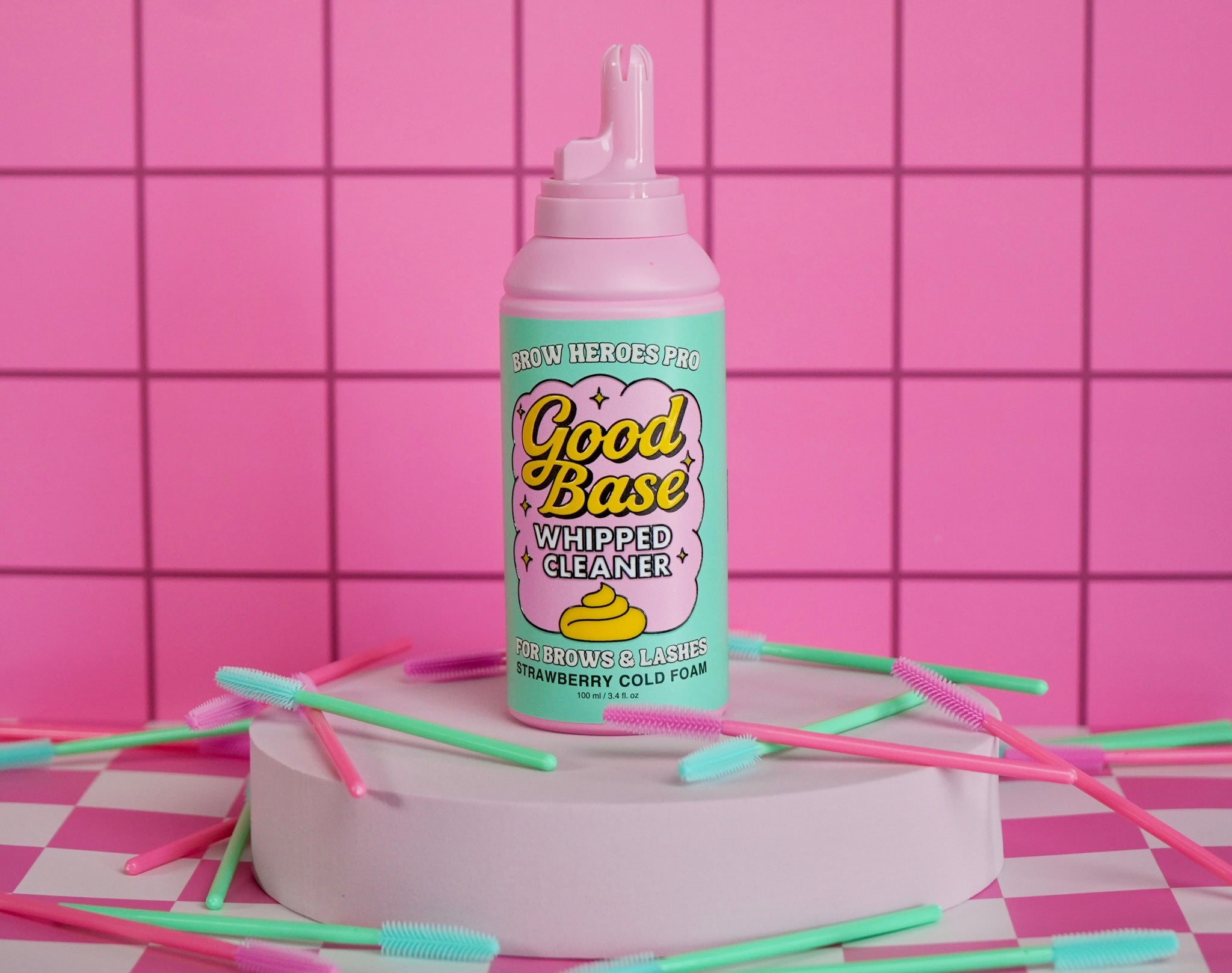 Good Base is a whipped lash cleanser designed to gently remove makeup, oil, and buildup from lash extensions and brows without compromising retention or lamination results.